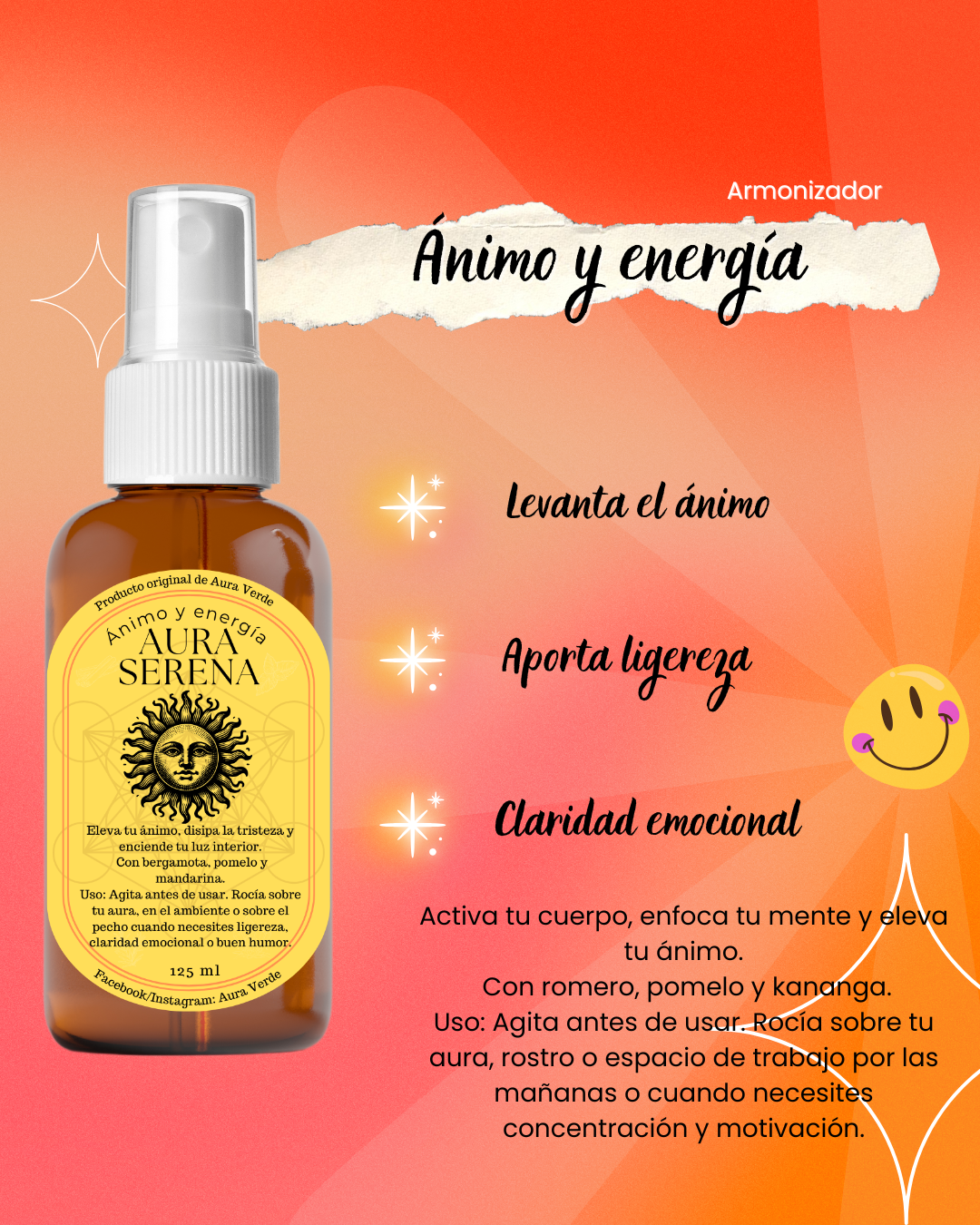 Eleva tu bienestar con nuestro Armonizador de Ánimo y Energía, diseñado para restaurar tu equilibrio emocional y vitalidad natural. Esta solución holística te acompaña en momentos de estrés o cansancio, ayudándote a reconectar con tu energía interior y promover un estado de armonía. Perfecto para incluir en tu rutina diaria de autocuidado.